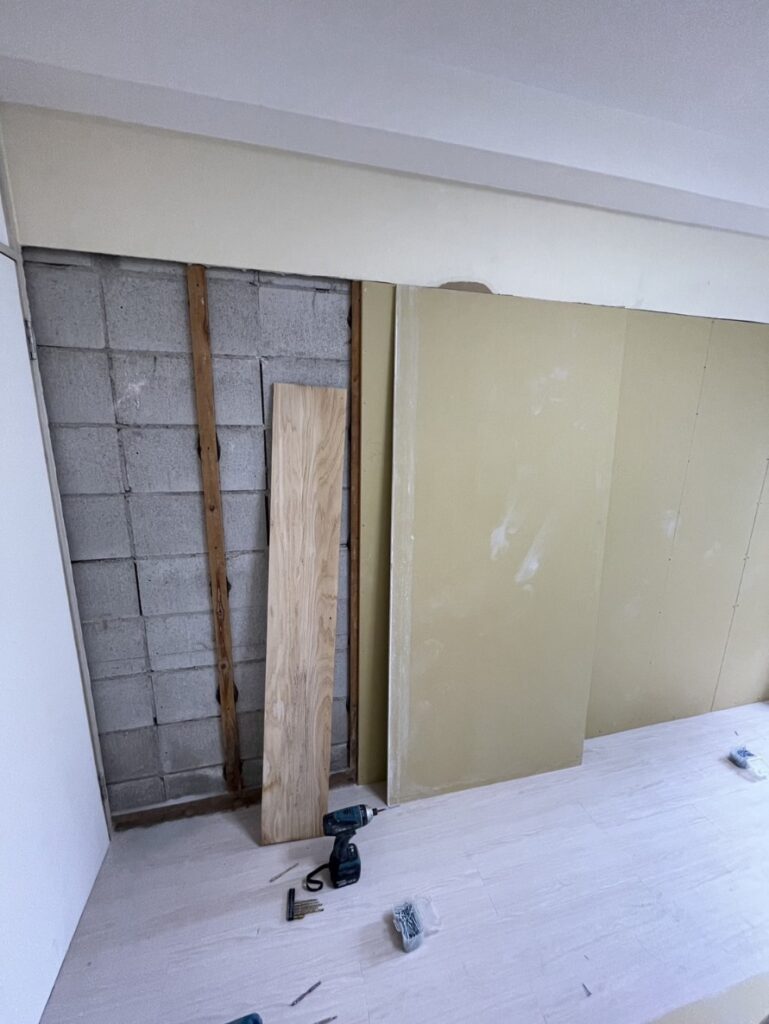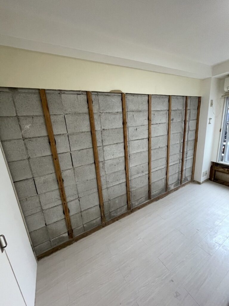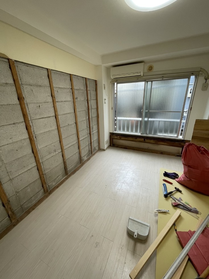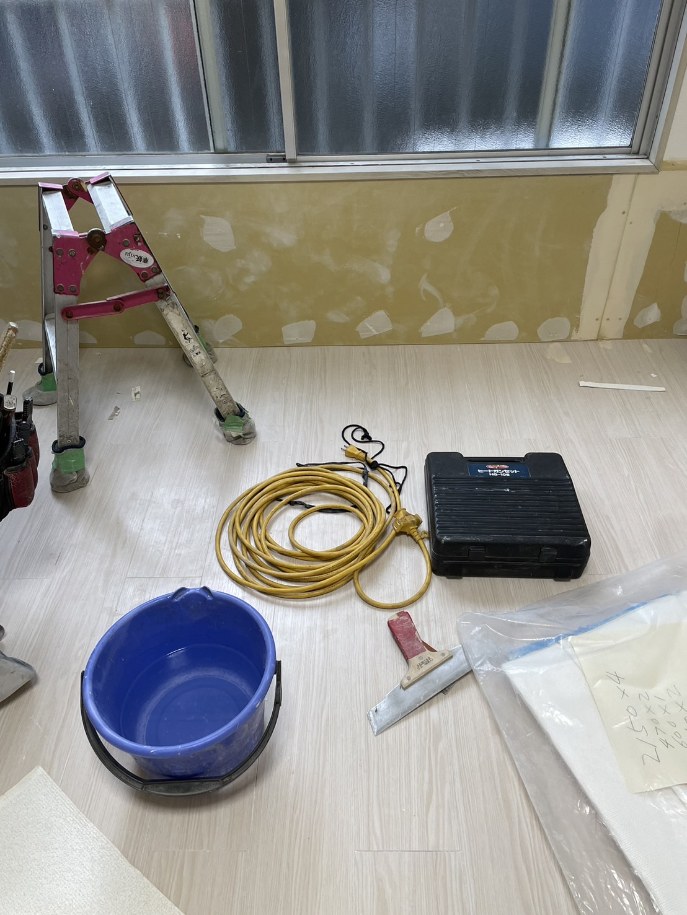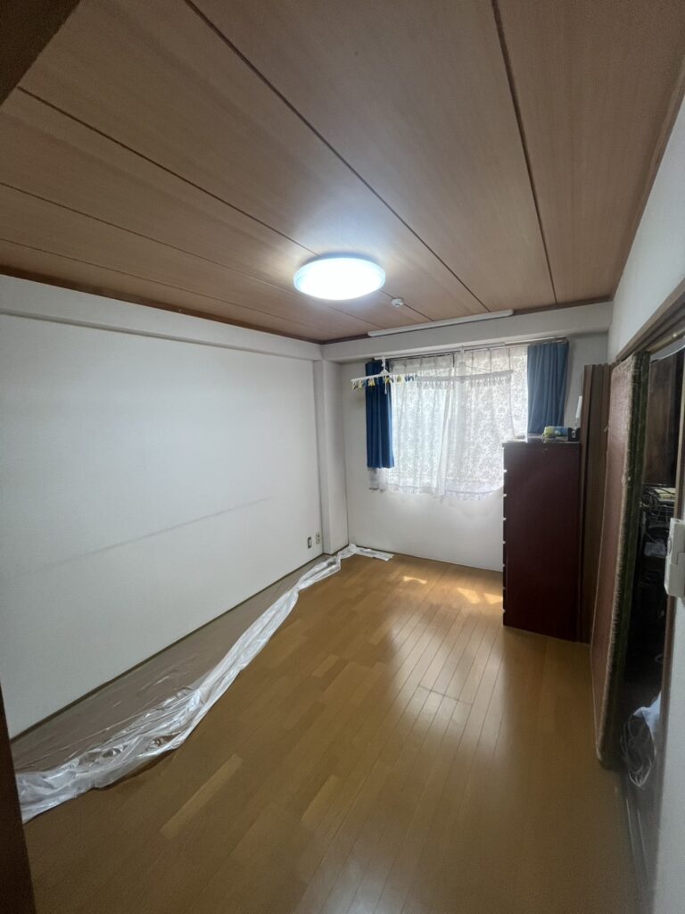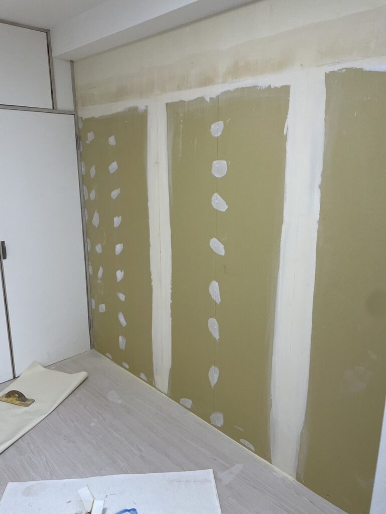 下地つくりから、ボードを新規にうち、新しくクロスを貼り原状回復工事となりました。床もフロアータイル貼で完了です。又この後はりほーむの友でクリーニングを行いお引渡しとなりました。