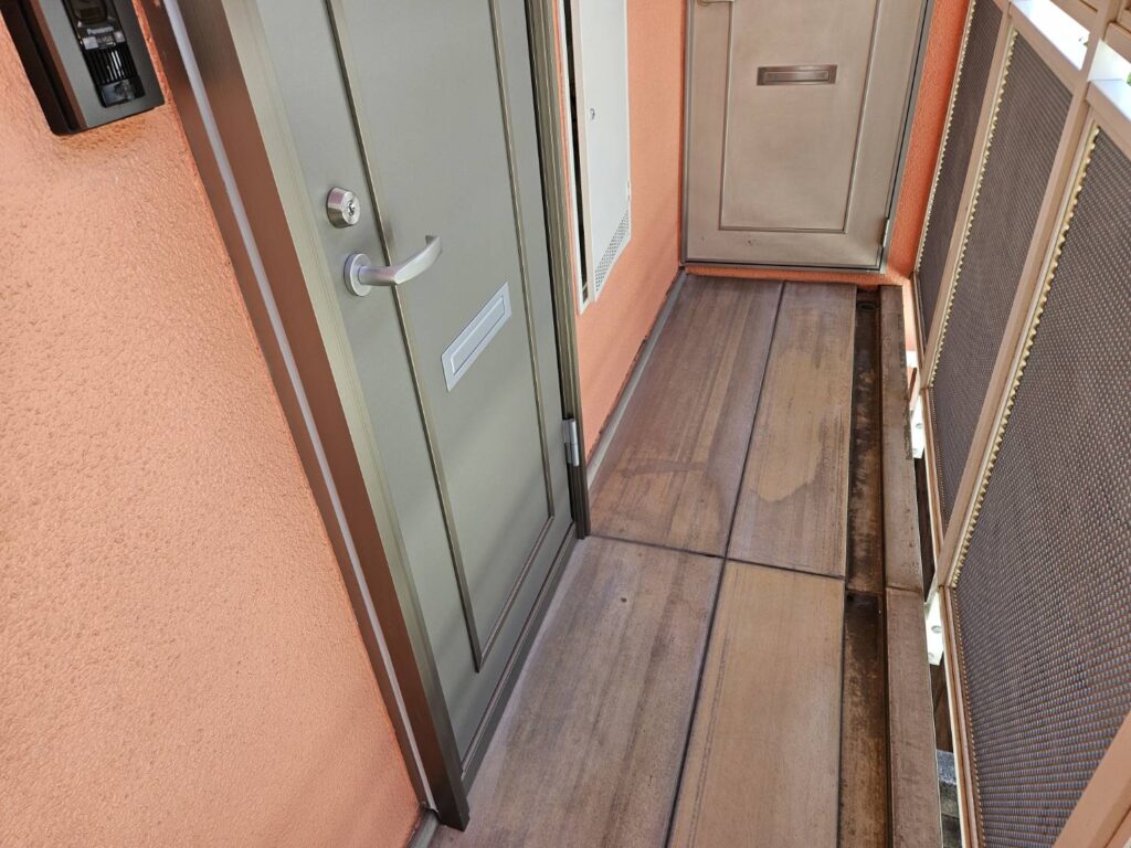玄関ドアがゆがんでしまっています。