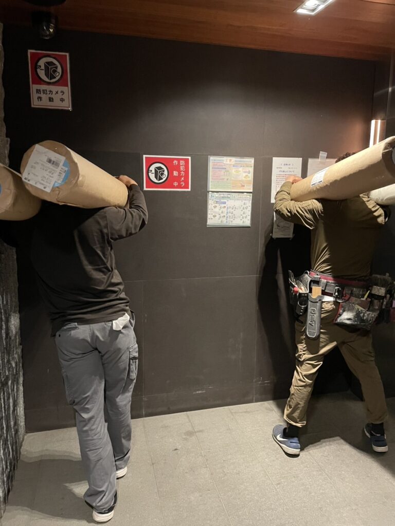 最近ではこのように2本原反を抱えて現場に入ることもあります。