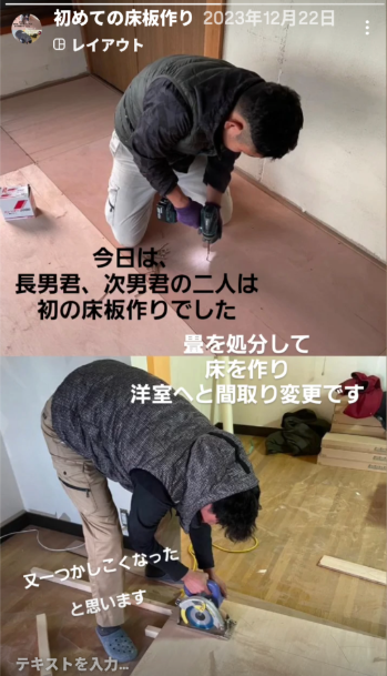 社員二人、初めての床作りを体験。