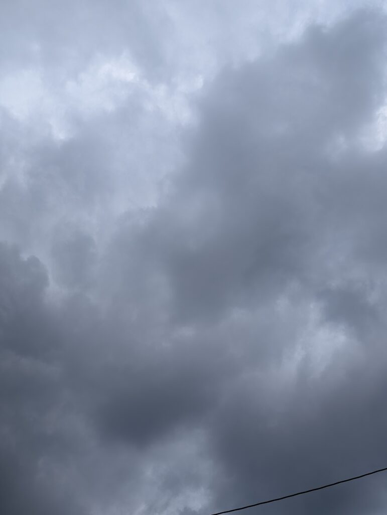 どんより曇った空。「降るなぁ」