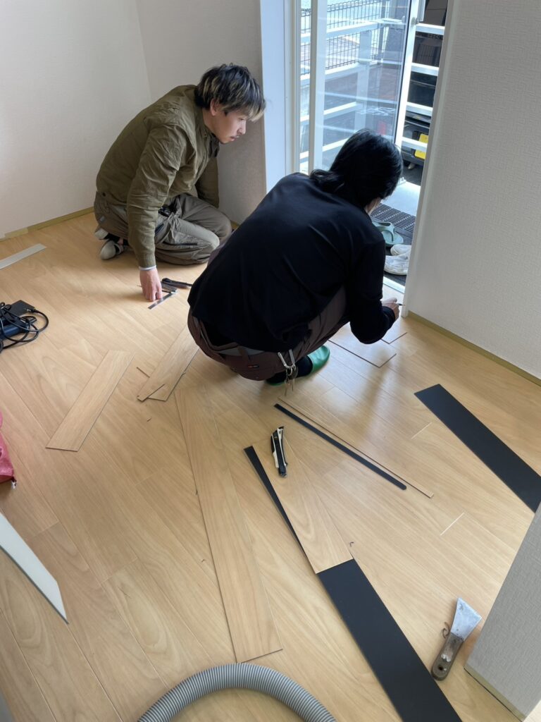 いつもより幅の小さいフロアータイルだったんですが、浮いてしまった箇所があり、貼替ることになりました。