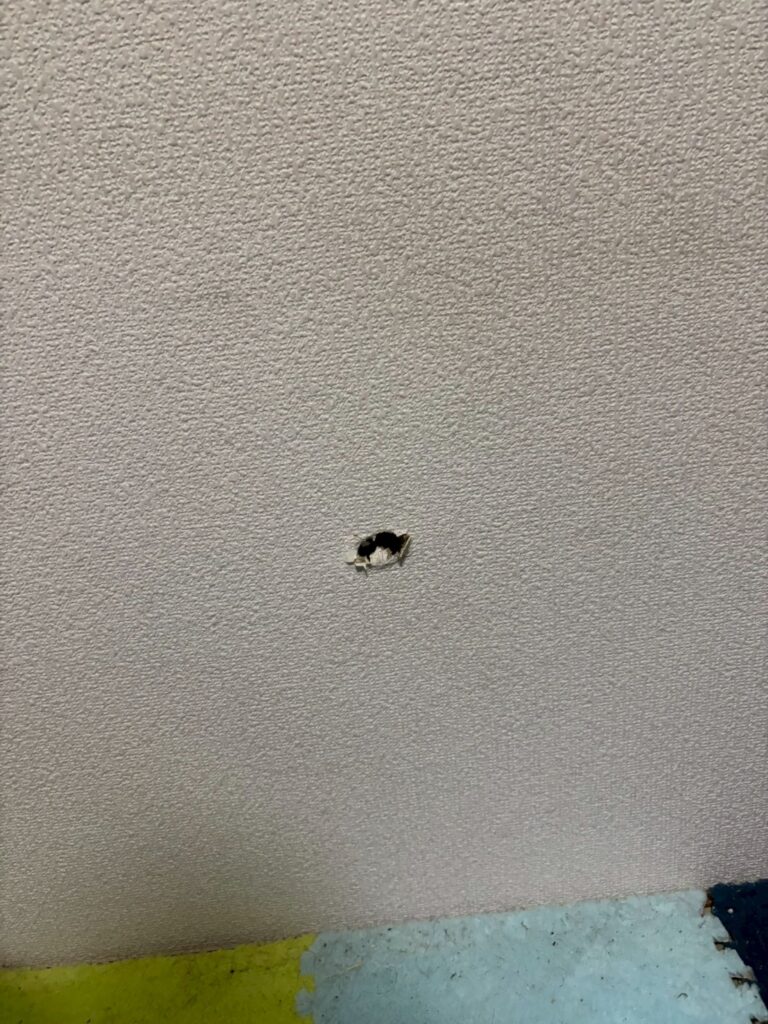 なんでも居住者の方、パイプベッドをご使用で、そのベッドで壁に穴を開けてしまったんだそうです。保険対応となりました為、審査等々にて少し、補修工事までの期間を頂きましたが、本日無事補修完了となりました。