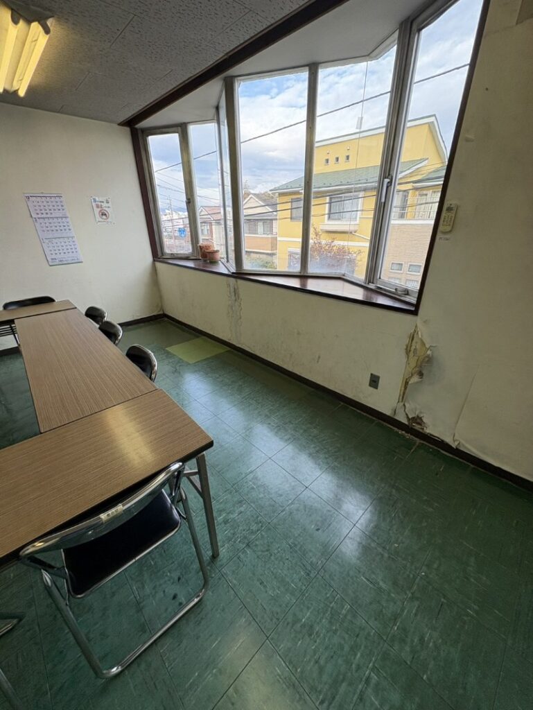 そして社長ですが、日野市の七生台地区センターにて壁の補修工事でした。