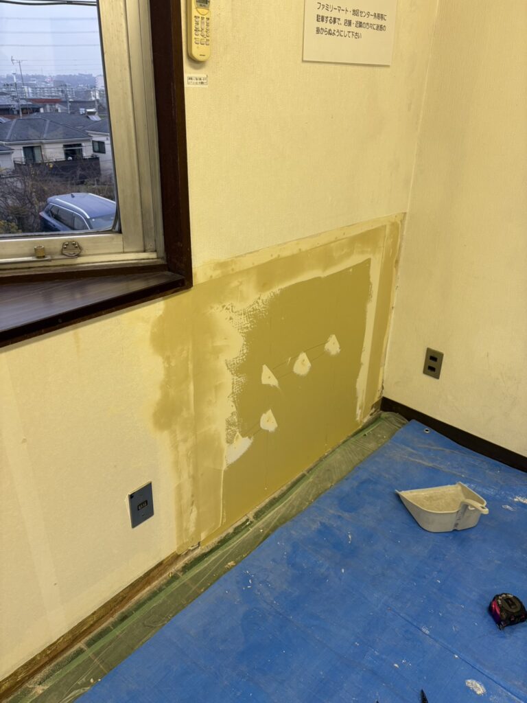 下地つくりからクロス貼工事なんですが、大分下地にダメージ大。下地つくりに半日を要し、バッチリ一日仕事となりました。