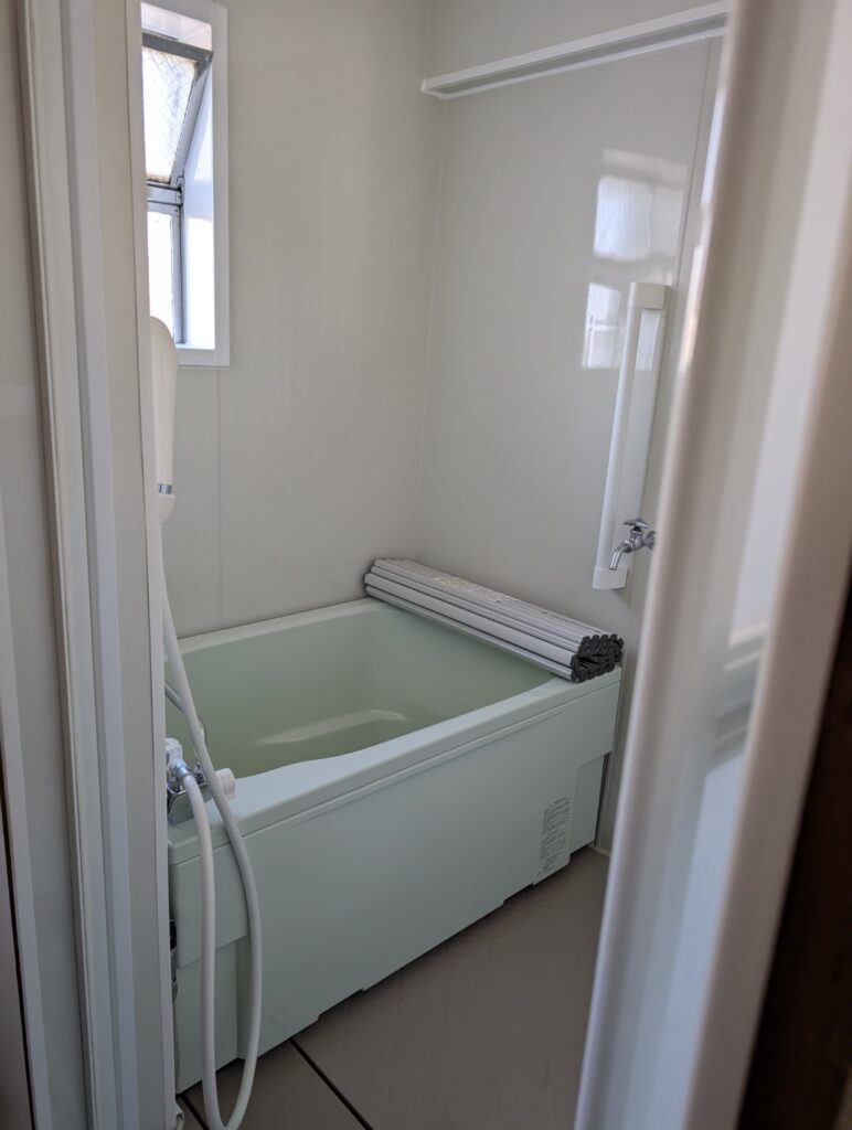 本日施工頂いたお風呂はユニットバスではなく、壁・天井・床にパネルを貼るという手法です。浴槽も交換とはなりましたが、これは全体が新しくなるので浴槽も交換しようとなりました。