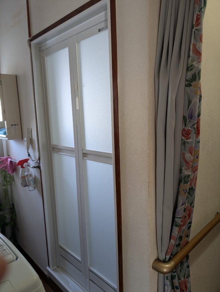 浴室に入る扉も一枚扉から折戸に。これは以前ご主人が浴室で転倒され、一枚扉が中に開くタイプでしたので、転倒したご主人様の救出が大変だったこともご考慮の上です。