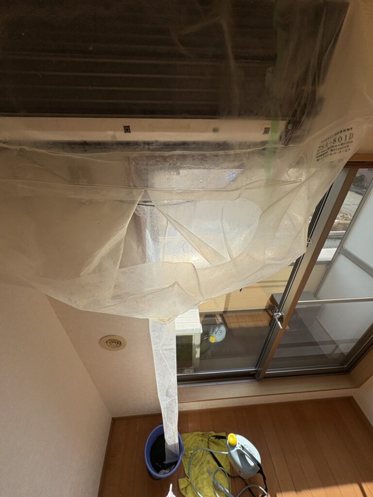 お部屋の方が日中お部屋にいない時間をお借りしてクロスの貼替と清掃、エアコン内部洗浄です。