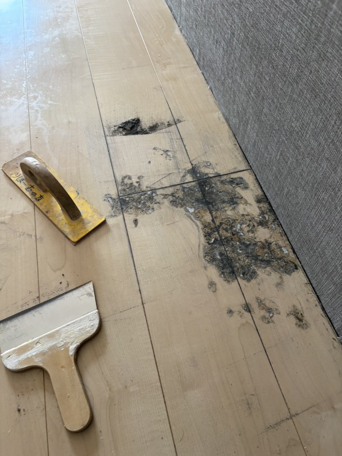 床はフローリングでしたが、フローリングの貼替となりますと、お日にちを頂きます。これは下地調整が必要になるためです。