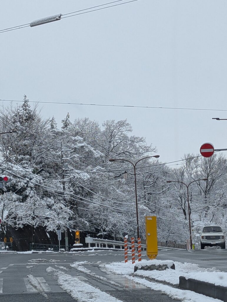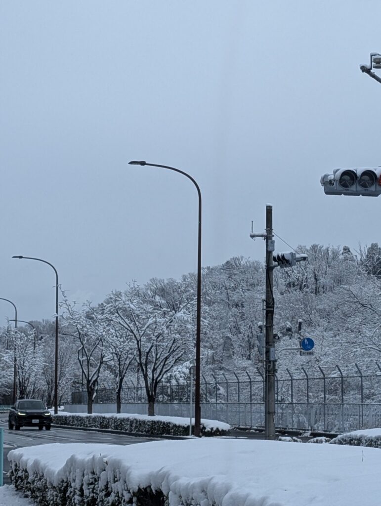 つい一昨日の雪。昼頃急遽調布の不動産屋さんに鍵をお渡しすることになり、車を走らせた時の写真をちょっとご紹介。