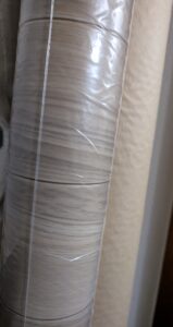 クッションフロアになります。下記2品を在庫処分として、通常施工費含め ㎡/4,500円のところ